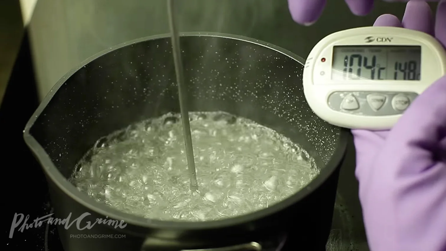 The tools you need for this lightsaber recipe are a pan, stove, spoon, heat resisting cooking gloves and a probe-thermometer.