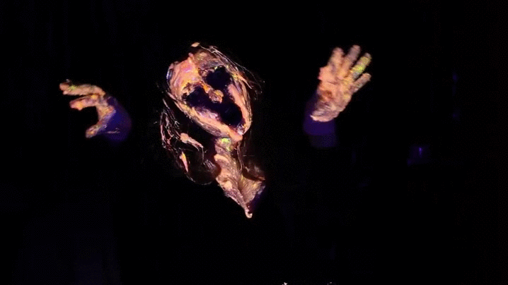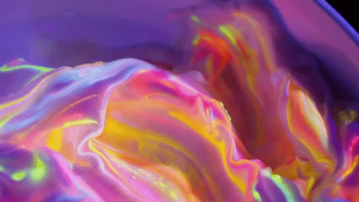 After mixing the shaving cream and UV face paint, it will look like this (depending on the colours you used). In the video you can see how I did it. The glow foam has been one of my favourite recipes to film, cinematography wise! It's quite trippy to look at it (and film it).