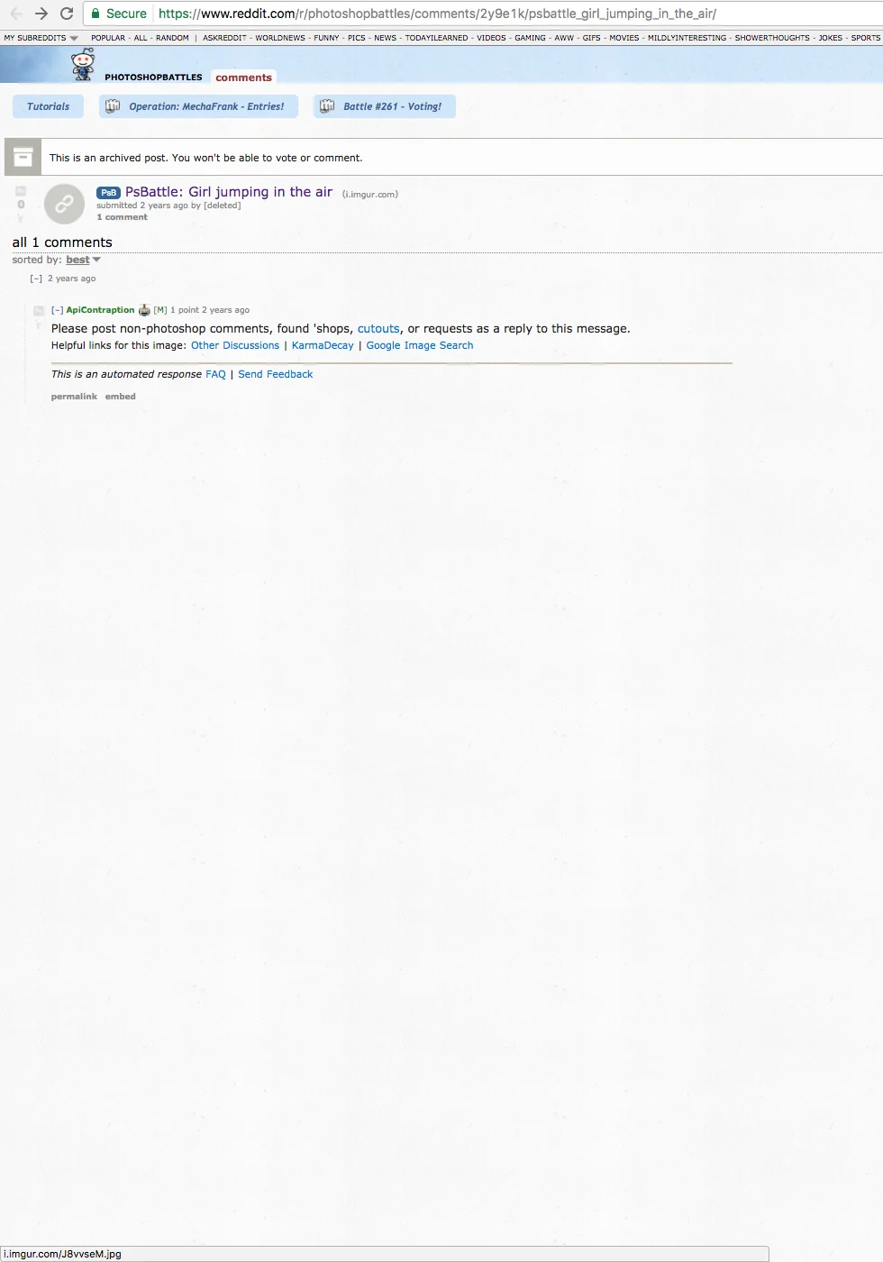 Side-note: The image below shows a picture of Exurb1a's ex-ex-girlfriend which he submitted to Photoshop battles on Reddit. /r/Photoshopbattles is a subreddit where one can submit a picture that has to be edited or used in(to) a new piece of work by the other people inside the sub (who wish to participate). Often the final work has an element of humour. Someone might want to ask the ex-ex girlfriend if she gave permission for him to upload her image on Reddit (I hope he didn't do this to make fun of her), or if she wants this image online at all still, because you can find it through the above links.