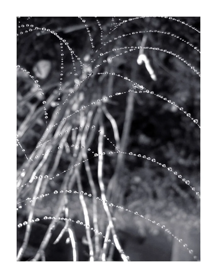 Waterdrops on a spiderweb. There's something incredibly beautiful about this tiny moment in time (no wonder people take pictures of it constantly, guilty as charged). I secretly call them fairy hills in my mind; the drops of water on the web. For a few hours they sparkle in a beautiful pattern, only lasting until the sun starts to shine.